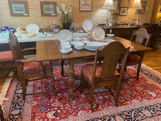 Dining Draw-Leaf Table, Six Chairs and Buffet