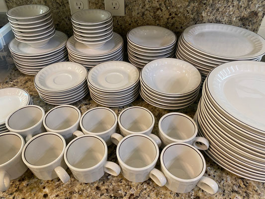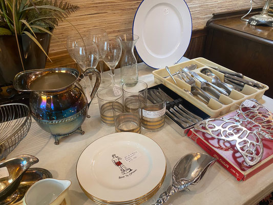 Kitchen Items, Crystal, China, Oneida Stainless, Linens and Bar Ware